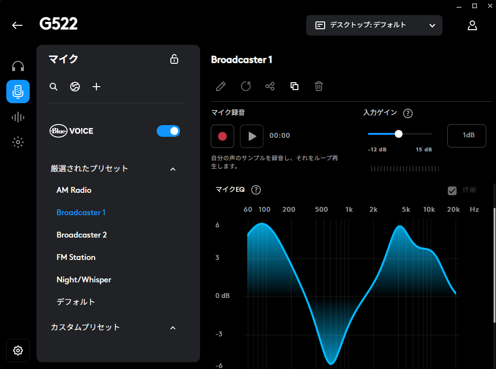G522は、Logicoolの高級マイク技術「Blue VO!CE」に対応しています。